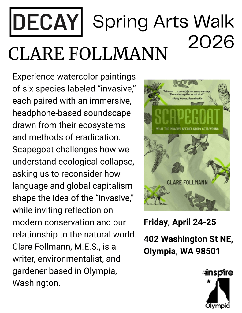 Join us to celebrate Clare Follmann’s book launch! We will be hosting an in house discussion on Follmann’s forthcoming book: Scapegoat: What the Invasive Species Story Gets Wrong. (AK Press March 3rd 2026)